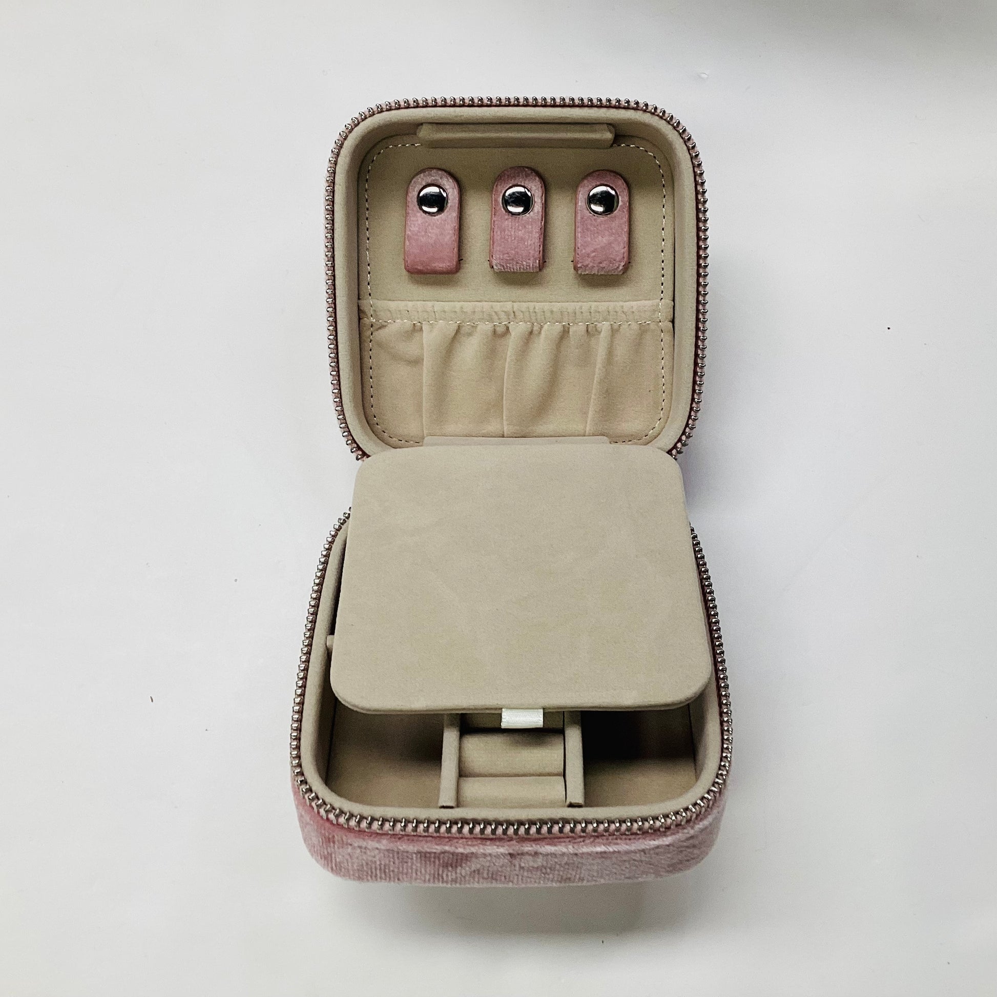 4 inch square jewelry box with zipper closure. Perfect for a 3 inch square insert. Self-finishing.