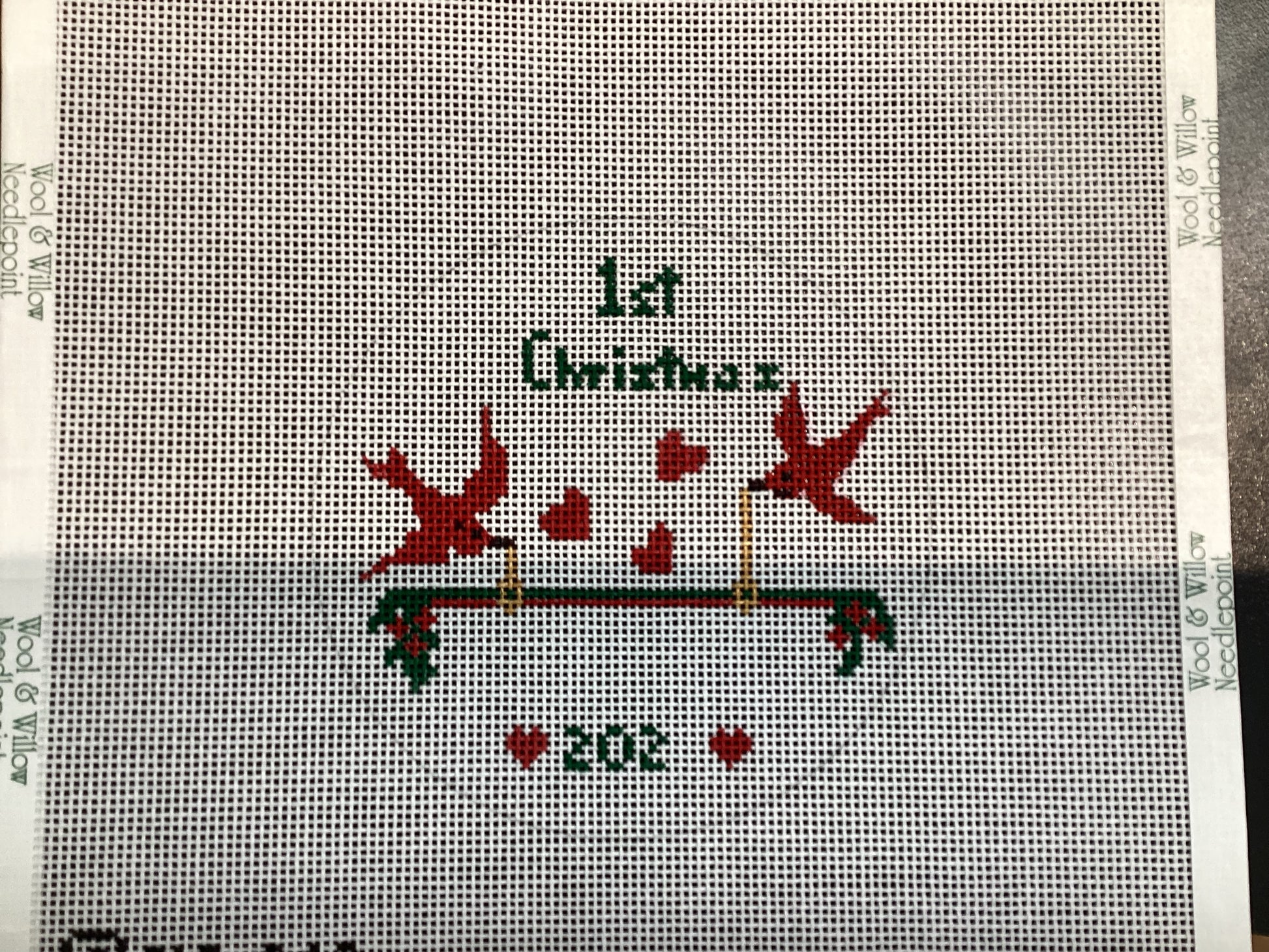 4" round design on 18 mesh needlepoint canvas. Love birds commemorate a new union.