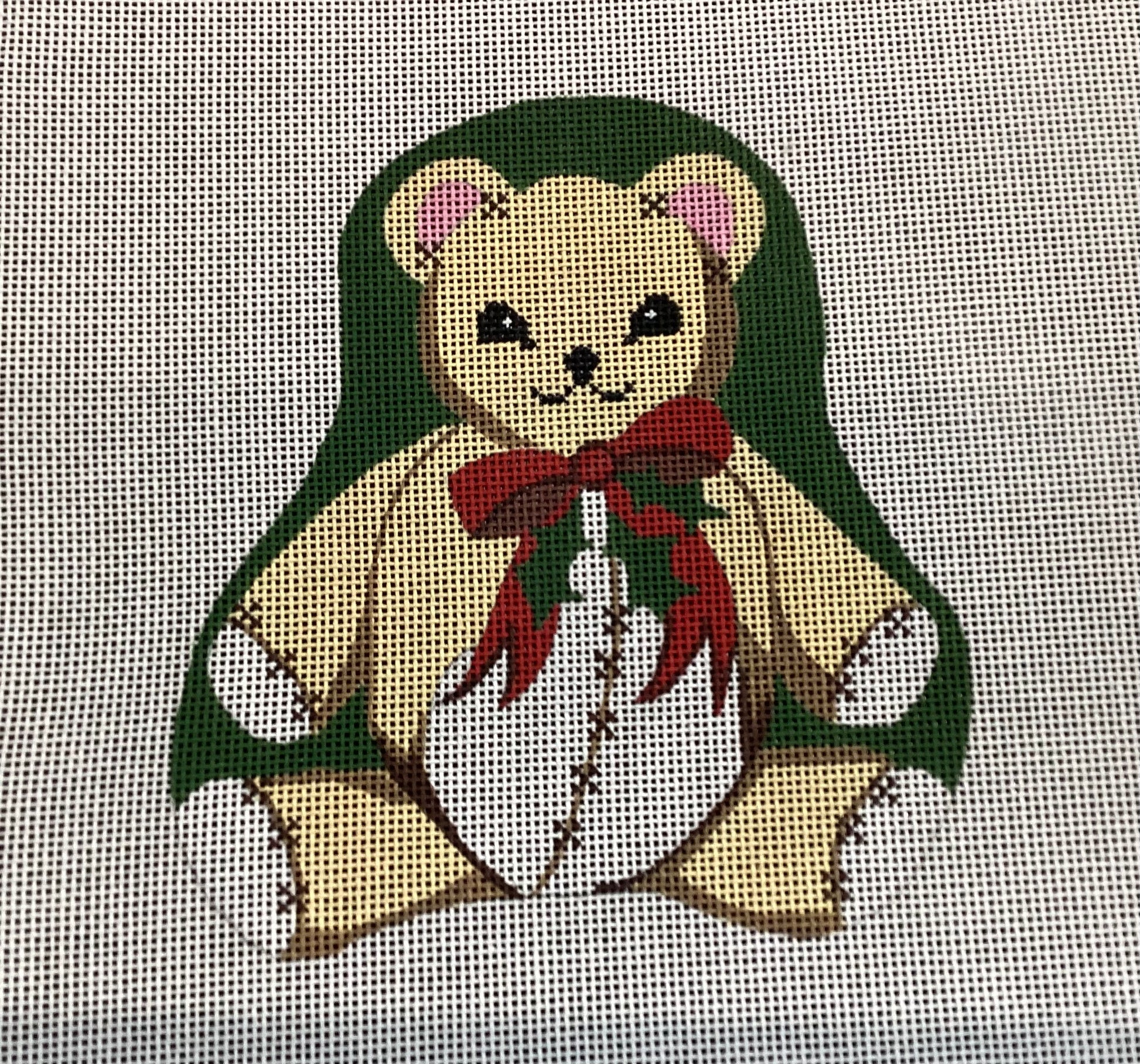 5" x 6" design on 18 mesh needlepoint. This sweet bear would make a great addition to your holiday decor.