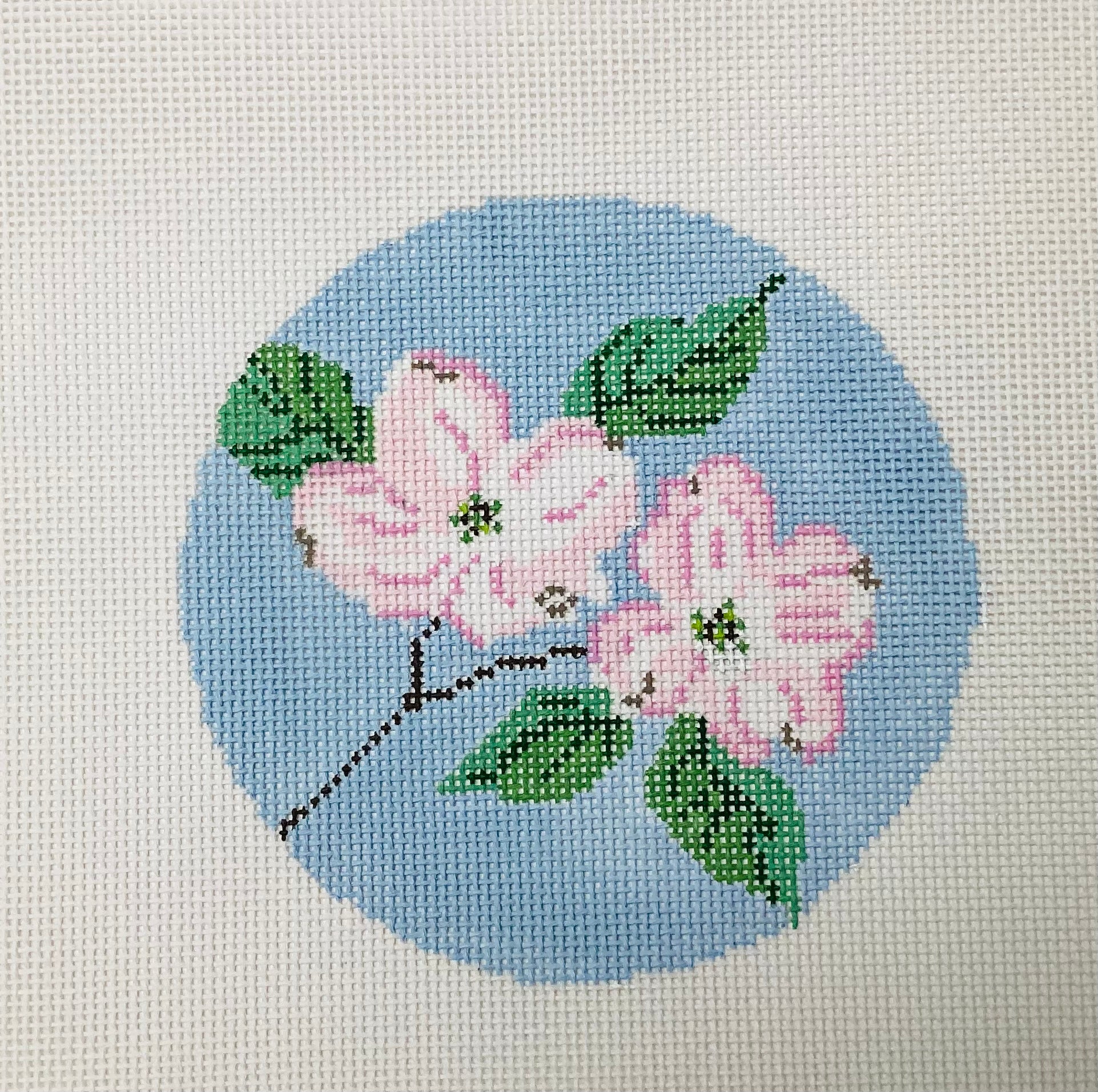4" round design on 18" mesh needlepoint canvas