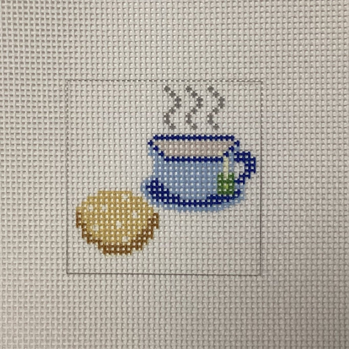 2 x 2 inch design on 18 mesh needlepoint canvas, for insert for Self Finishing Bag Charm.