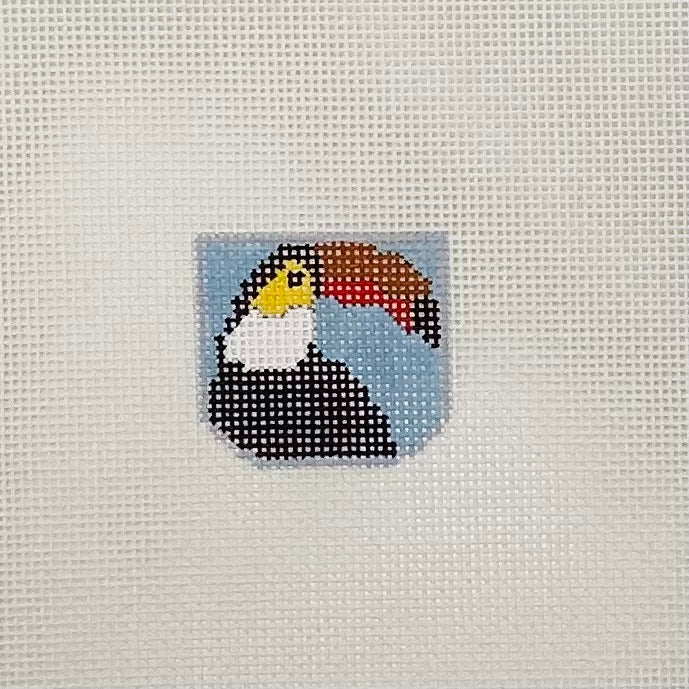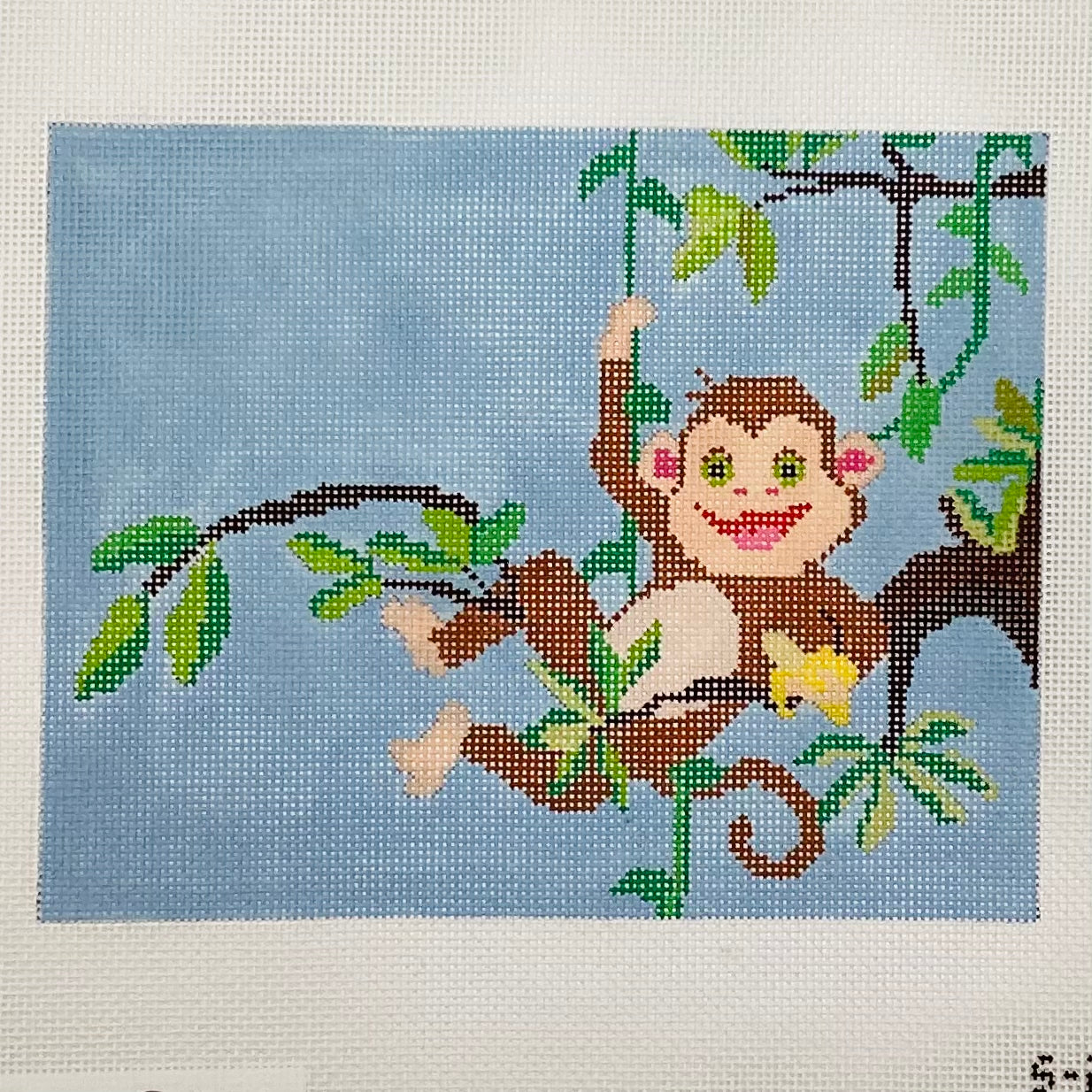 Large canvas is 7" by 5.5" on 18 mesh needlepoint canvas.