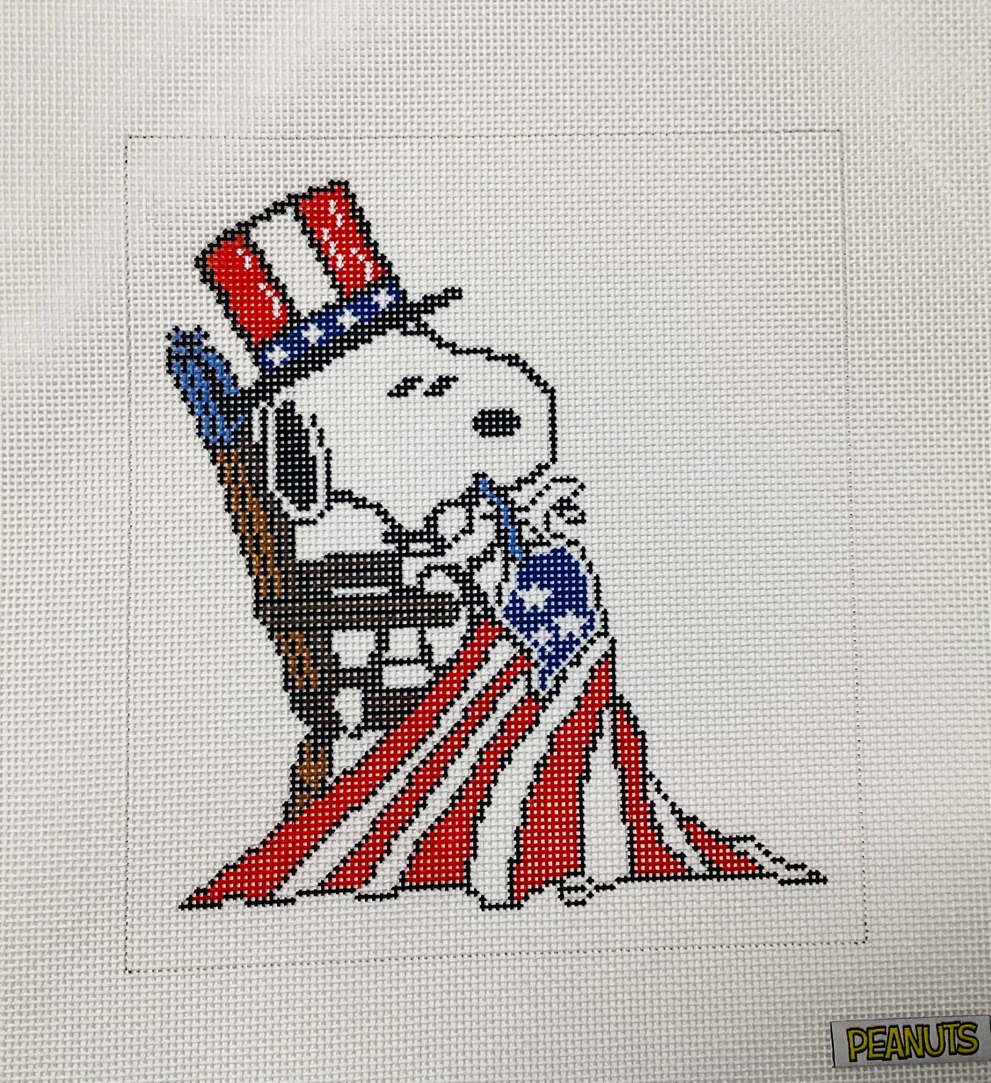 Peanuts Patriotic - Snoopy Sewing Flag Needlepoint Canvas