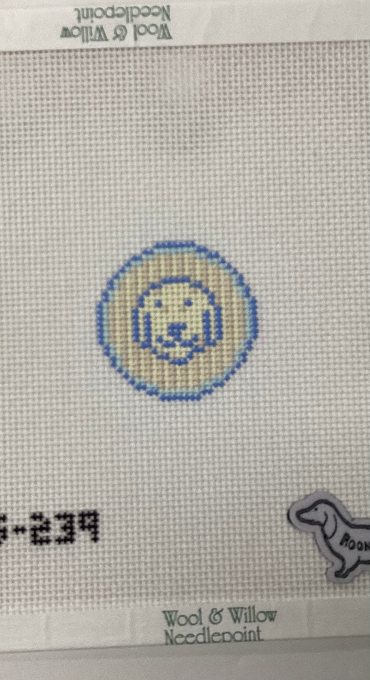 1.5" round design on 18 mesh needlepoint canvas. Bring a reminder of your pup wherever you go. Fits as an insert as well.