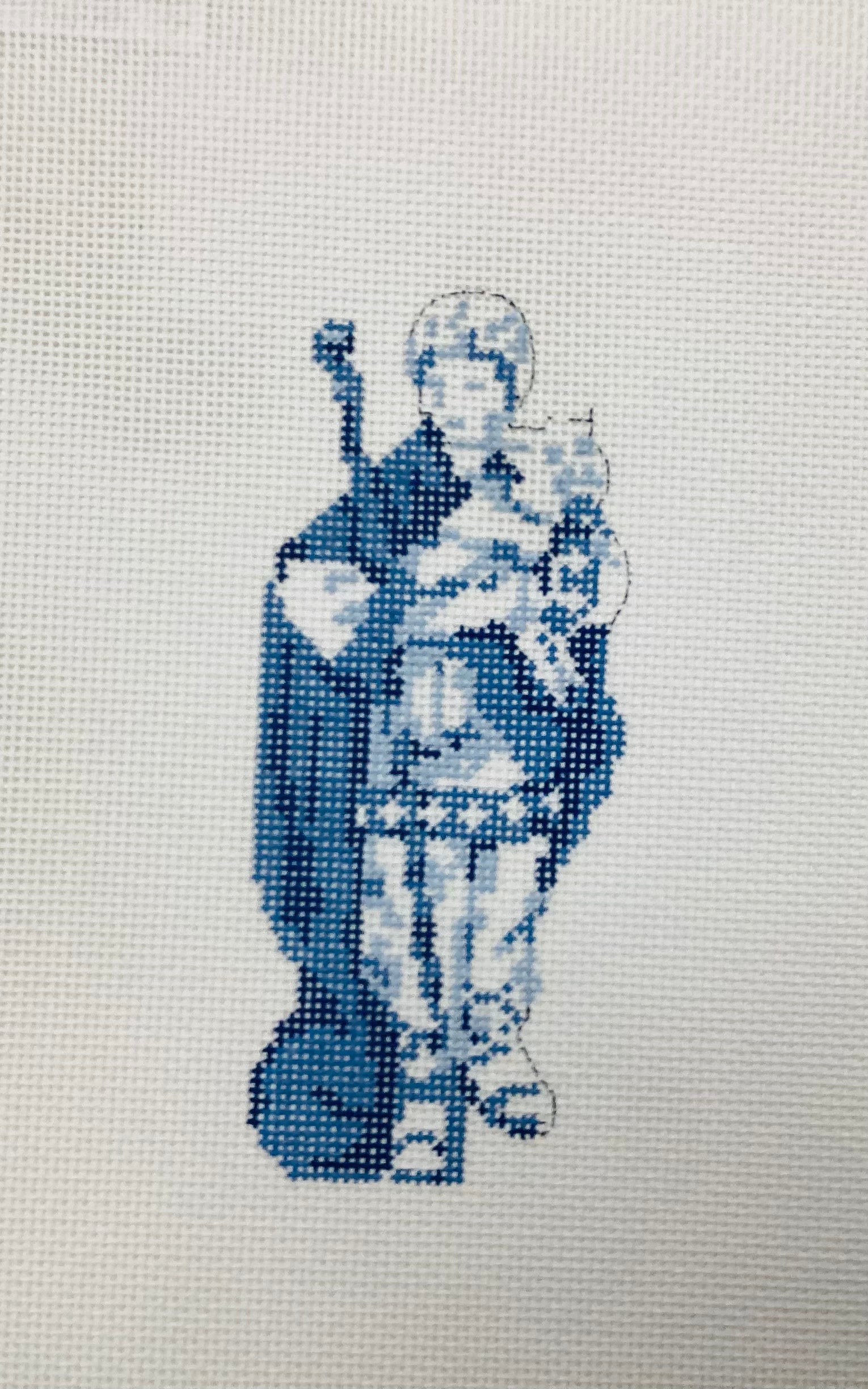 2" x 5" design on 18 mesh needlepoint canvas. Classic blue and white for your holiday spirit.